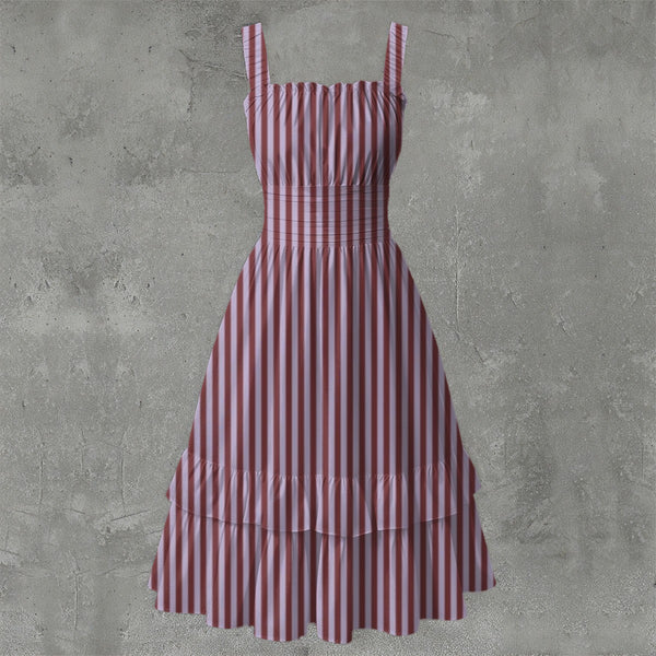 Discover timeless elegance with this striped Ruffle Hem Dress, designed for the discerning summer wardrobe. Constructed from sumptuous milk silk that feels gentle against the skin and allows optimal breathability, this sleeveless piece showcases refined ruching at the bodice and sturdy wide straps for assured support. The gently ruffled hem adds graceful movement and feminine allure, while the striking striped pattern brings visual interest. Ideal for coastal retreats, upscale garden events, or relaxed daytime wear, this dress embodies understated sophistication and versatile charm. About this item:-