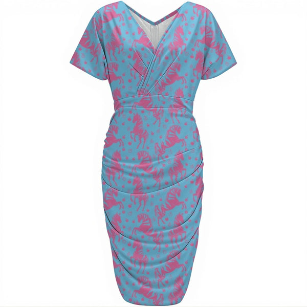 Recommended for the Pink & Blue Horses Women's V-neck Pleated Dress Multi